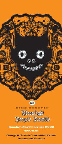 I was in front of the George R. Brown Convention Centre in Houston. Along with about 13,000 other cyclists, many dressed in Halloween costumes and astride bicycles festooned with all manner of coloured lights. After a couple of months of regular outings with the Six Thirty group I had felt confident enough to sign up for my first organised ride: The Moonlight Bicycle Ramble. Confident enough to choose the 20 mile route over the 8 mile option.