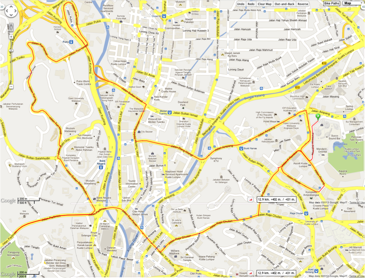The rest of the ride was a lot of fun. A few meandering cyclists notwithstanding. After the drama of the flat tires there was a short climb into the Lake Gardens followed by a u-turn back down the hill. We rode past the Bank Negara Malaysia (Central Banks of Malaysia) building and through a wooded and quieter part of the city. The second half of the loop took us back past the office blocks, shop houses, hotels and apartments of the city center. It was a treat to ride on streets that are usually clogged with traffic.