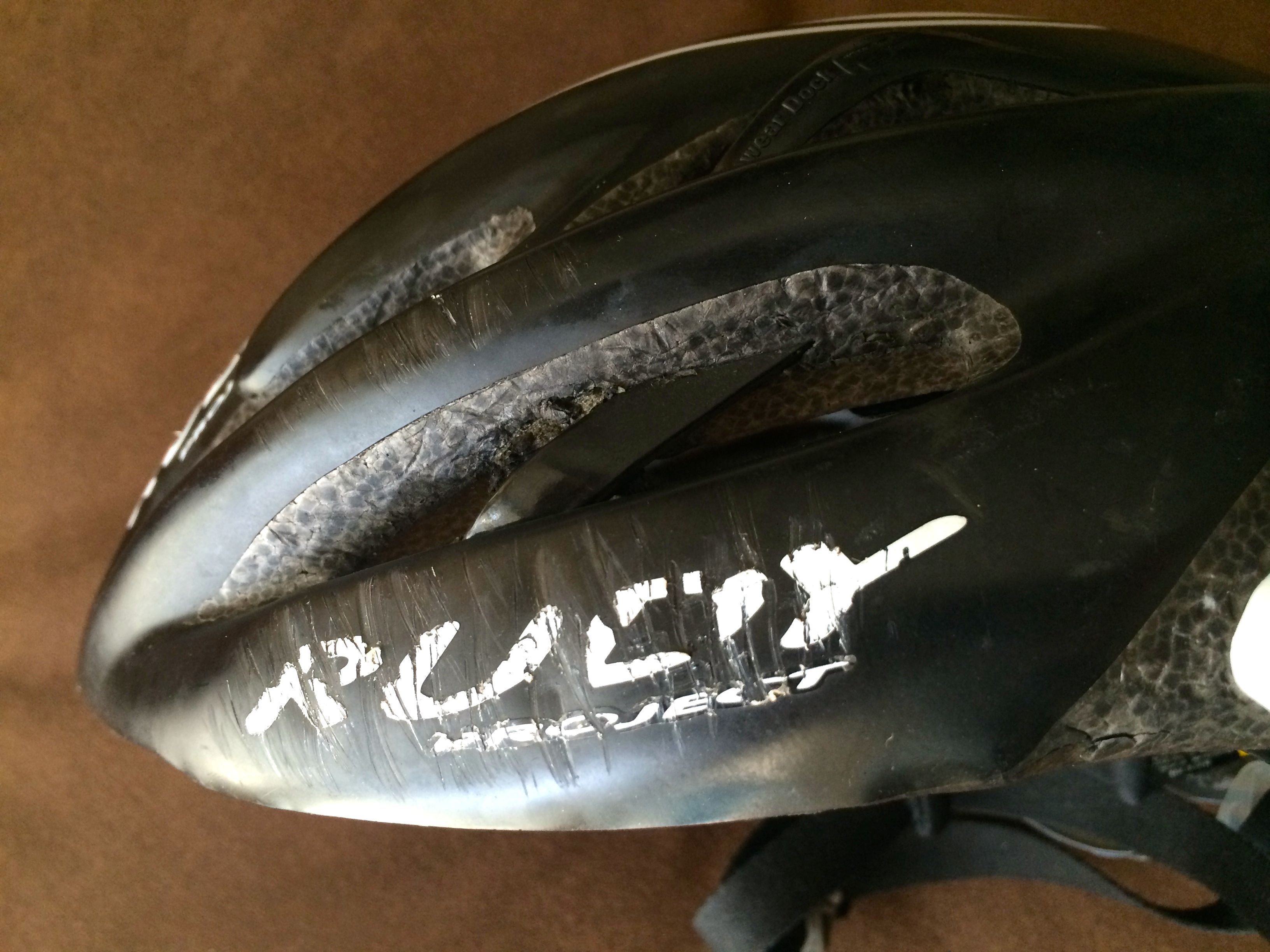 I took a look at the rest of my kit once I got home. Â My helmet did its job. Â The damage looks cosmetic only, but this is a good excuse to get a new helmet.