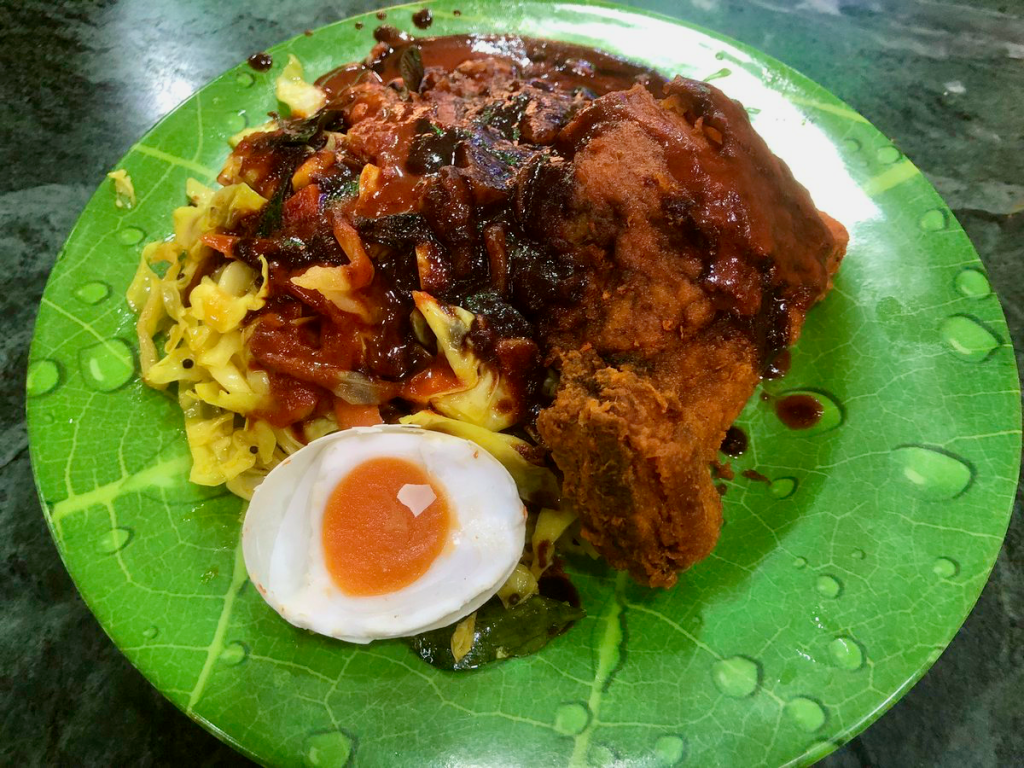 We hadn’t ridden very far. We had long forgotten all thoughts of a second loop. What was more important after a very wet ride was some signature nasi lemak and fried chicken.