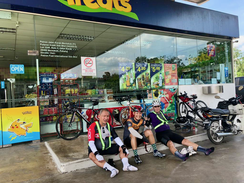 We only made it about 20 km down the road before we needed to cool down at the Petron station in Mentakab. By which time we had resigned ourselves to getting into Bentong after dark.