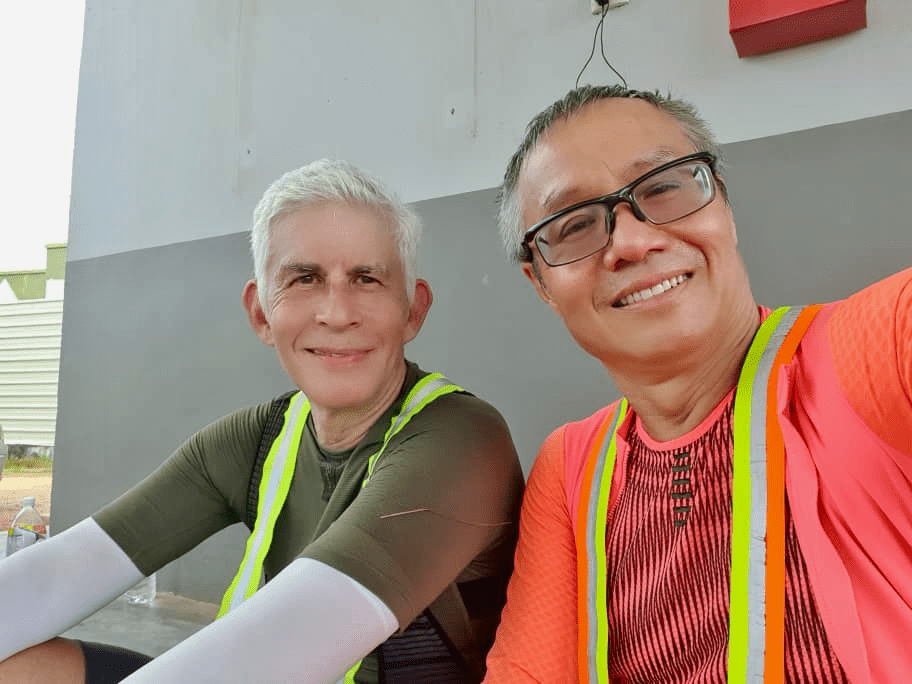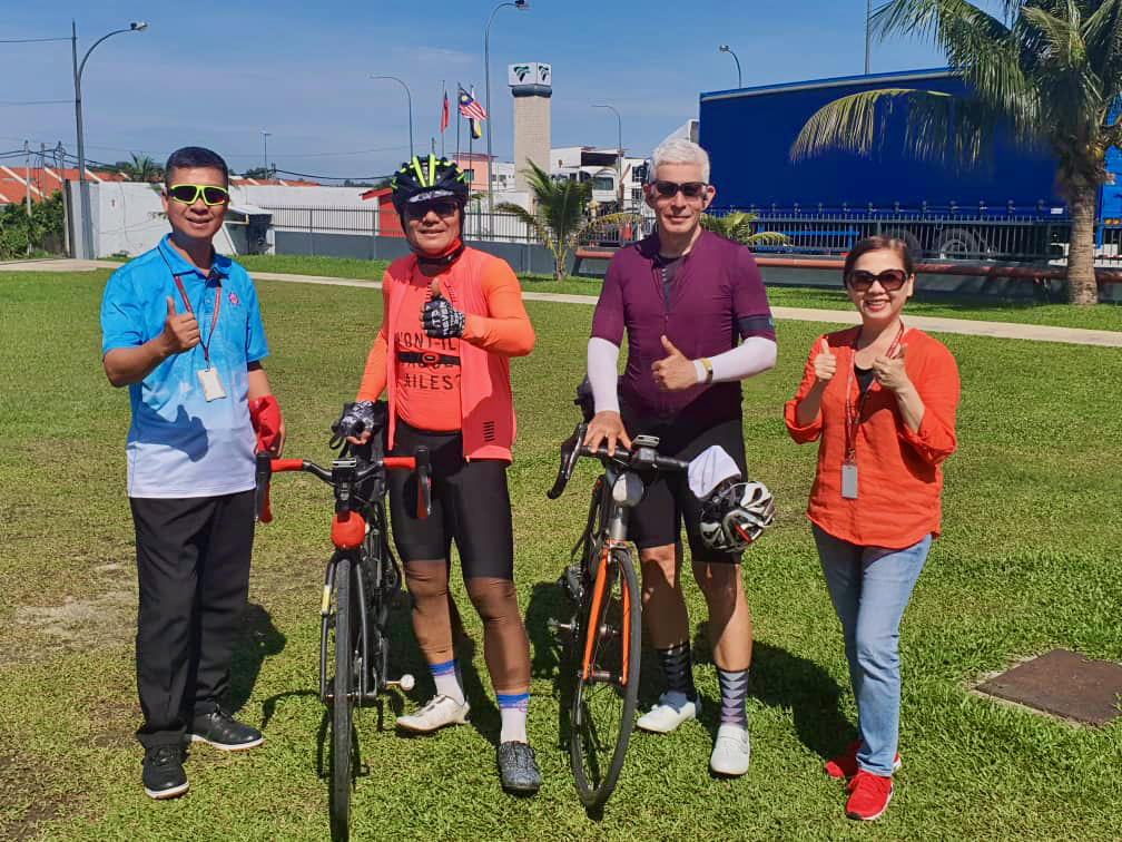 We stopped at the PETRONAS station in Bidor to refill bottles. There was a staff training event there. One of the staff brought plastic chairs to us to sit on. That was very nice. We probably stayed for longer than we needed to because of those chairs.
