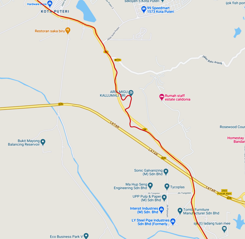 Bukit Hantu is probably the most challenging hill in Hulu Langat. Especially if you tackle it from west to east. The ascent is about 3.4 km with an average gradient of 7% and maximum gradients over 10%. The descent is shorter at 2.6 km. That descent comes with a tricky combination of turns in the final 500 metres, where the gradient approaches 10%.