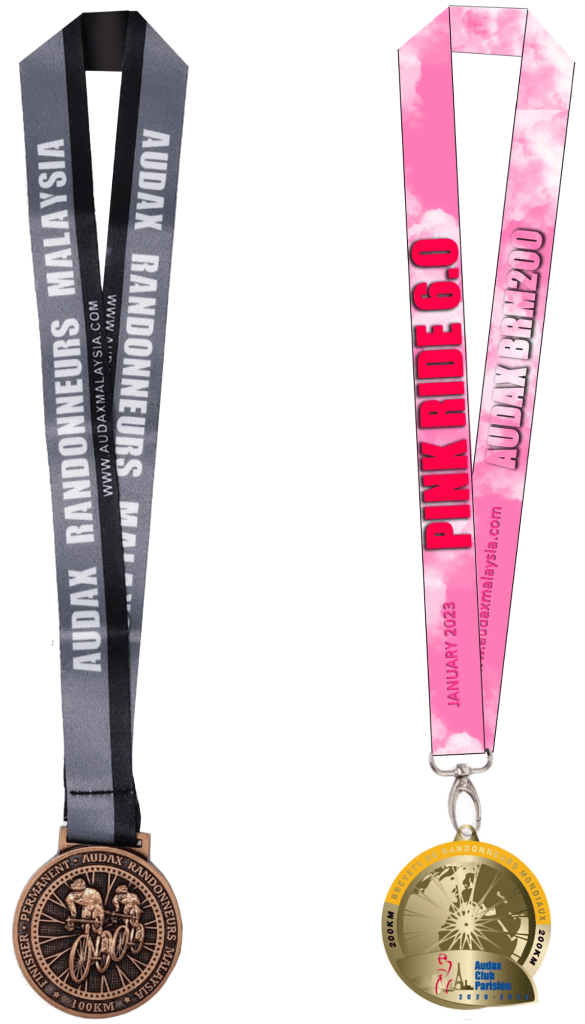 We all got medals. The Permanent 100 was not an official Audax event, so the ones we got for riding 100 km are not the same as the Audax Club Parisien-issued medals that the successful BRM 200 riders could purchase.
