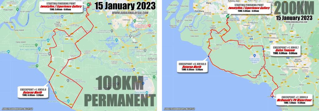 The Permanent 100 and the BRM 200 shared the same route for the first 20 km. At Taman Periang, the Permanent 100 riders turned right towards Banting, and the BRM 200 riders turned left towards Kampung Sungai Manggis. Although the two routes reconverged at Asam Batu Laut, we would not see the BRM 200 riders again. The Permanent 100 riders got to Asam Batu Laut after a further 20 km from where the two routes split. The BRM 200 riders had 130 km to cover before they got to Asam Batu Laut.