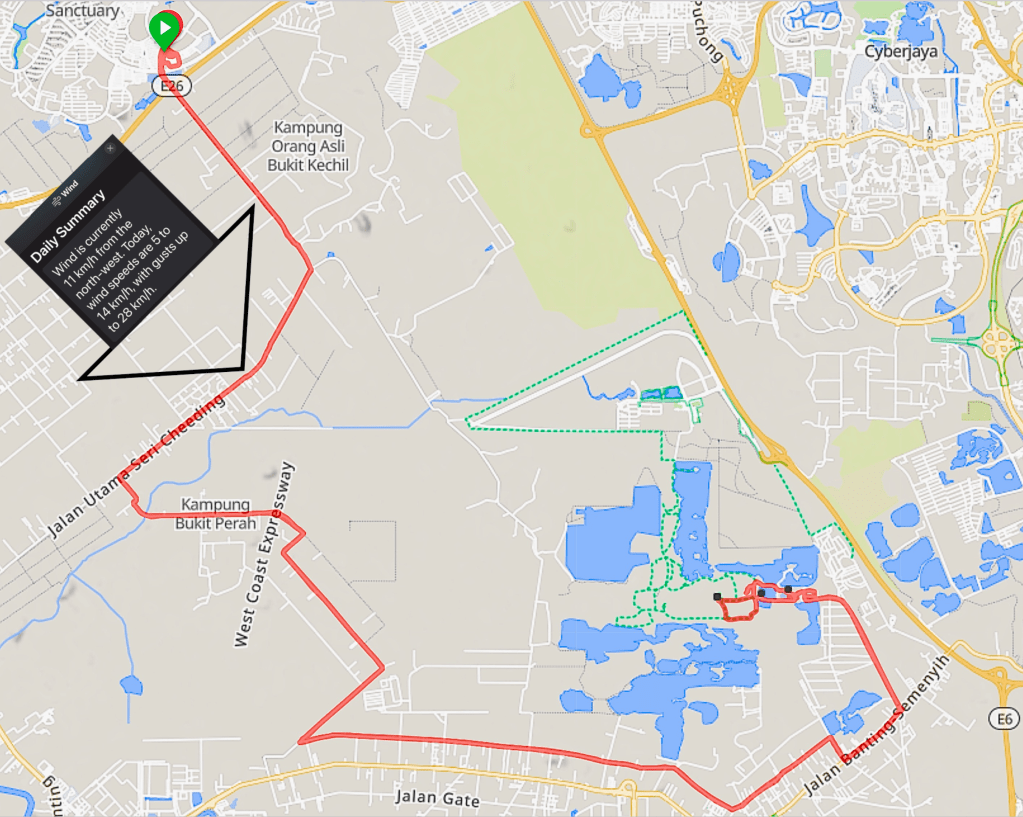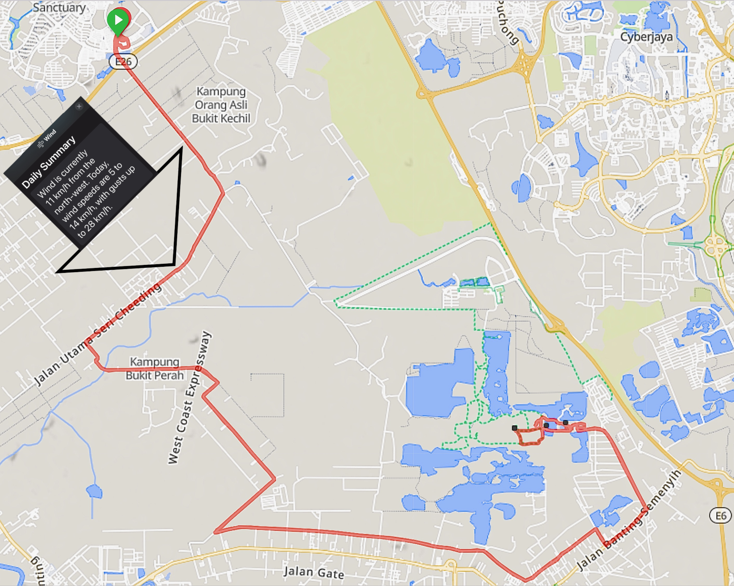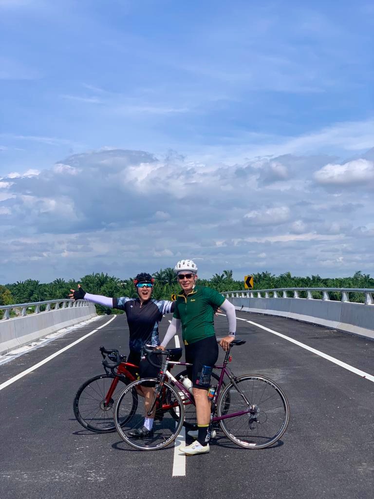 We definitely felt those 28 kph gusts. Talk about a block headwind! What a relief to see the bridge over the South Klang Valley Expressway. Only a kilometre to go to the end of the ride. And an ice-cold drink.