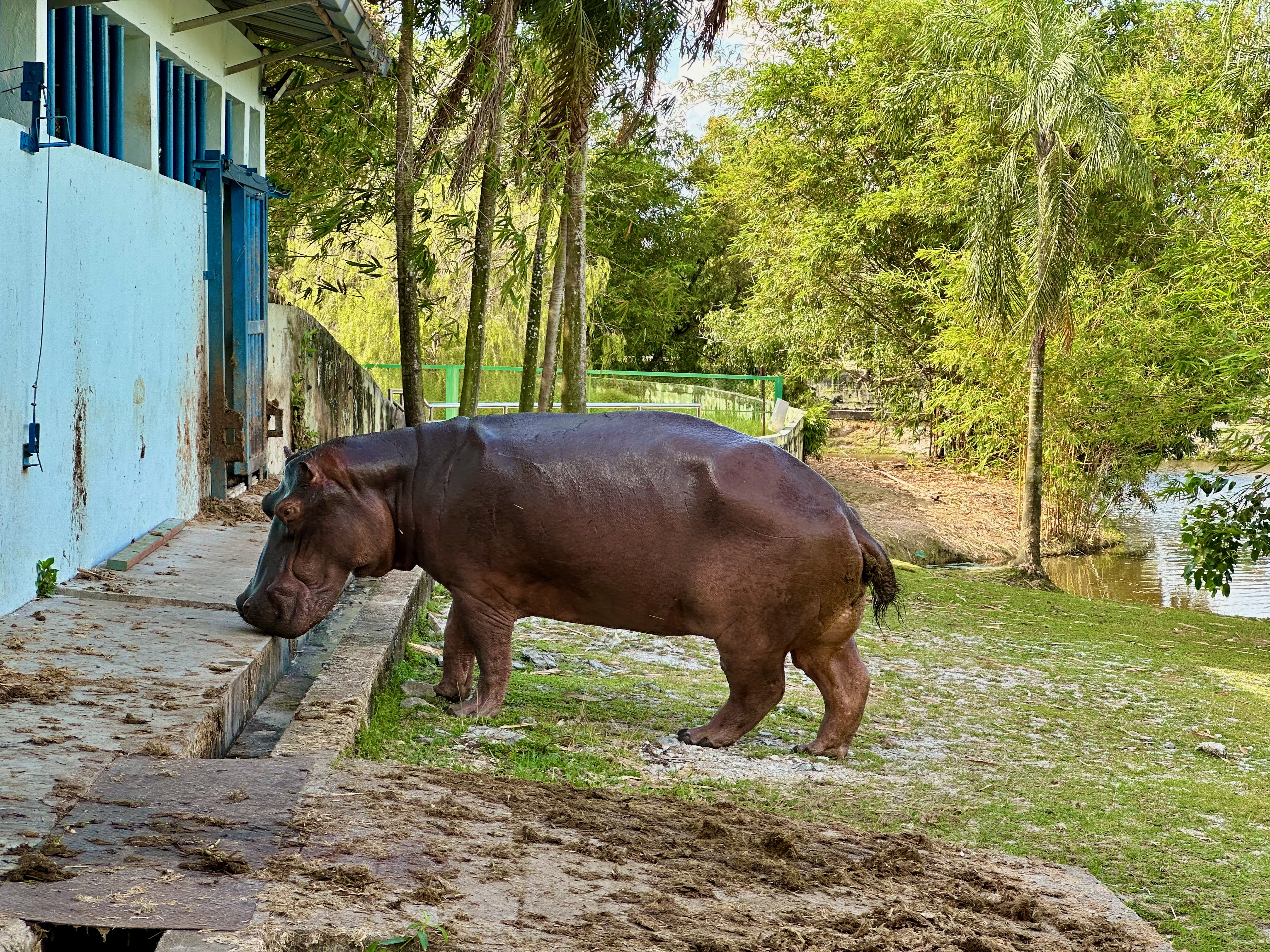 We considered waiting thirty minutes to watch the hippo feeding, but it was getting hot. It was time to ride back to Rimbayu.
