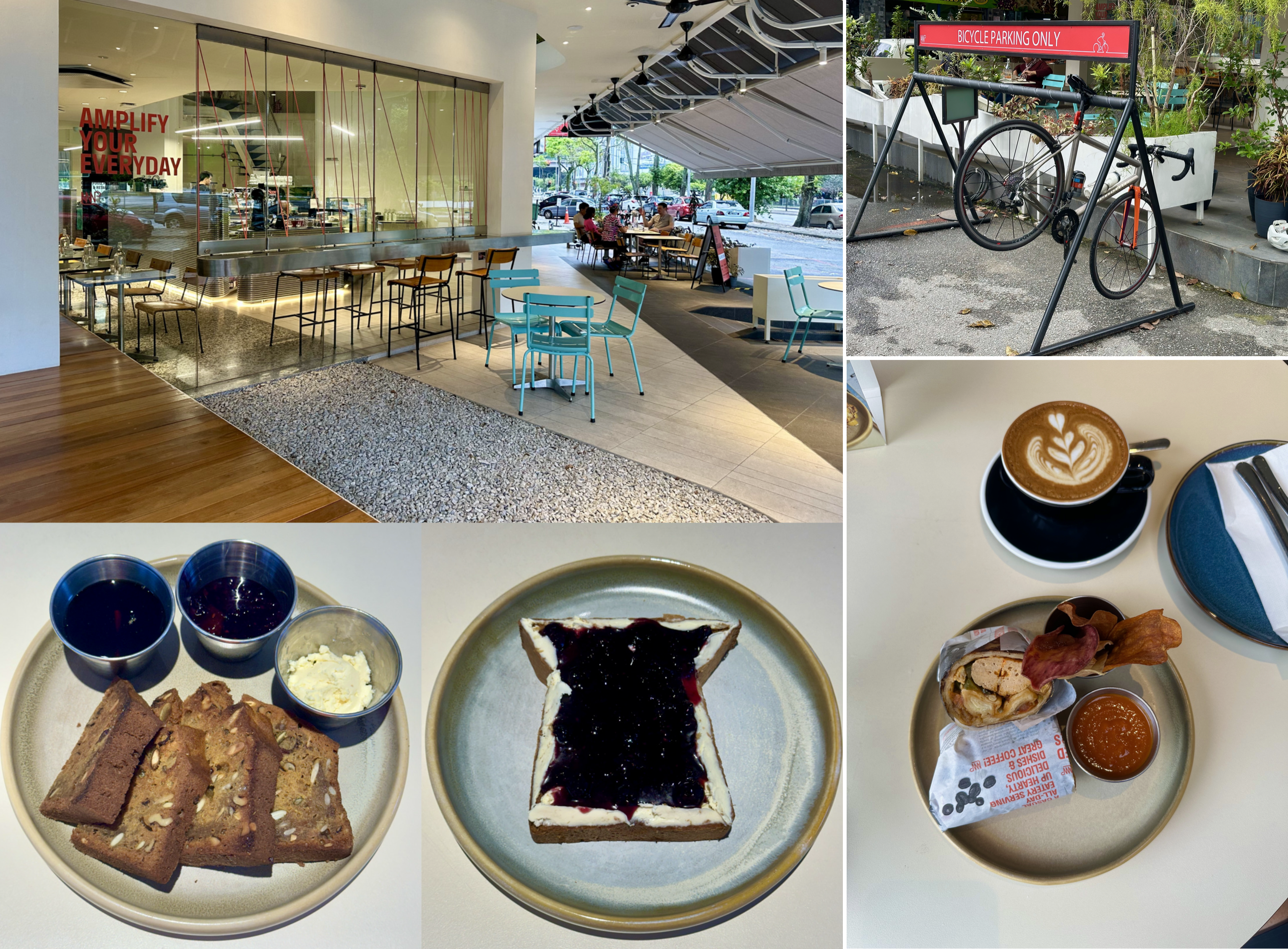 Immediately south of Street Bakers is AMP Café. AMP Café is relatively new. One of my cycling buddies is a trained chef. He designed the menu and helped set up this café. AMP Café has become very popular in the short time it has been operating. I was there this morning. Most of the tables, both inside and outside, were occupied. There was also a steady stream of delivery riders picking up orders. Good to see.