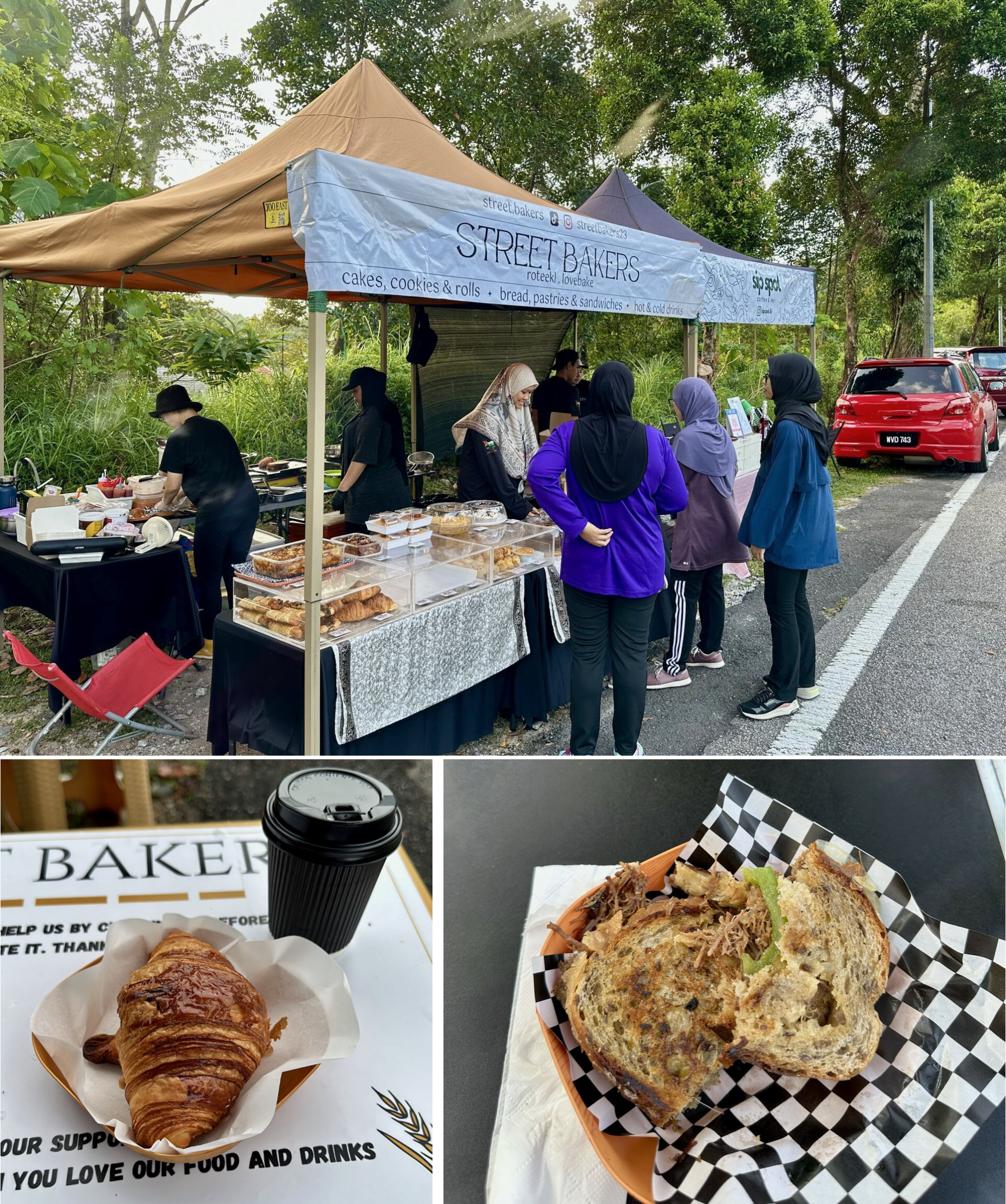 On the other side of the city centre is Street Bakers. Street Bakers is an outdoor roadside stall only open on Saturdays and Sundays. It is no ordinary roadside stall. Run by a master baker and her family, Street Bakers offers croissants, muffins, cookies, cakes, sweet and savoury pies, sausage rolls, hot sandwiches, lasagna and a few other delicious eats. Sip Spot next door provides coffee and tea.