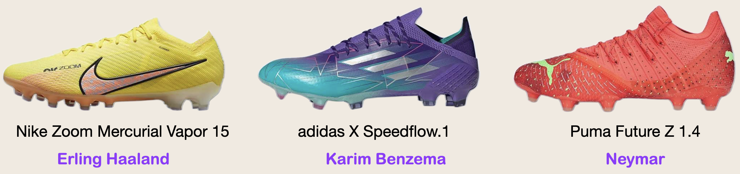 A Sunday league player can wear the same football boots as his or her top goal-scoring idol.