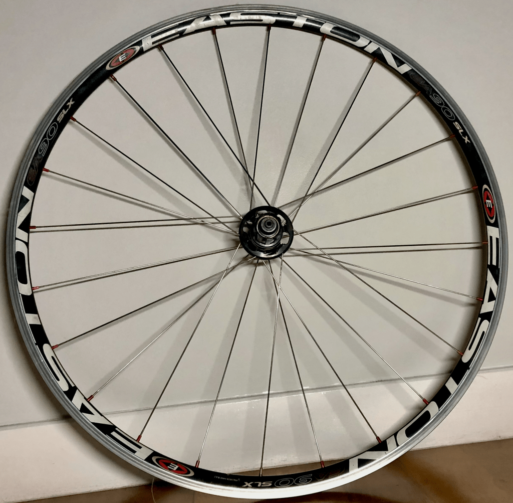 So now I have just the rear wheel from the set of eleven-year-old Easton EA90 SLX’s that came with that bike.