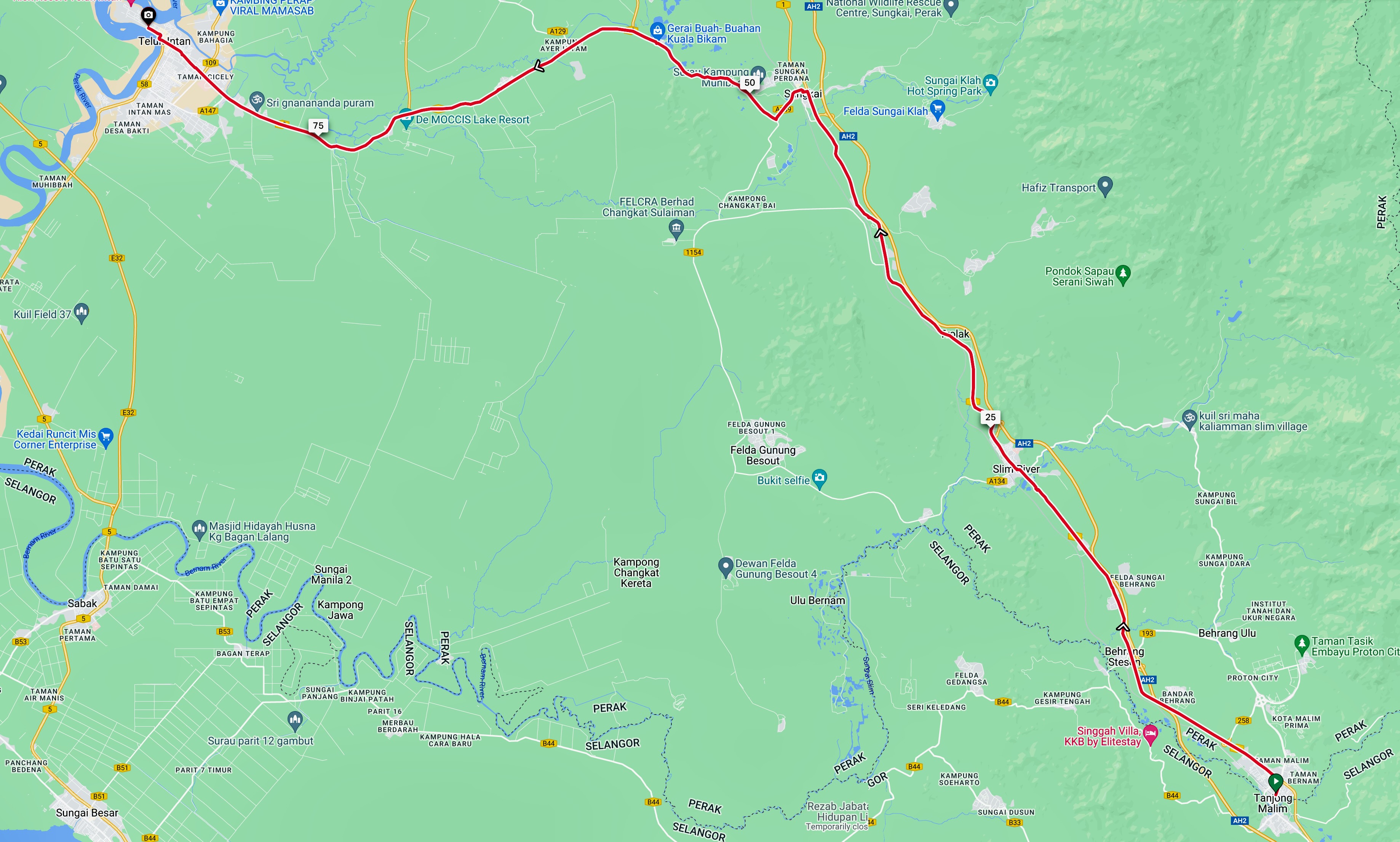 We were on our way after some food and drink at Restoran Hijas. About 85 km lay between us and Teluk Intan.