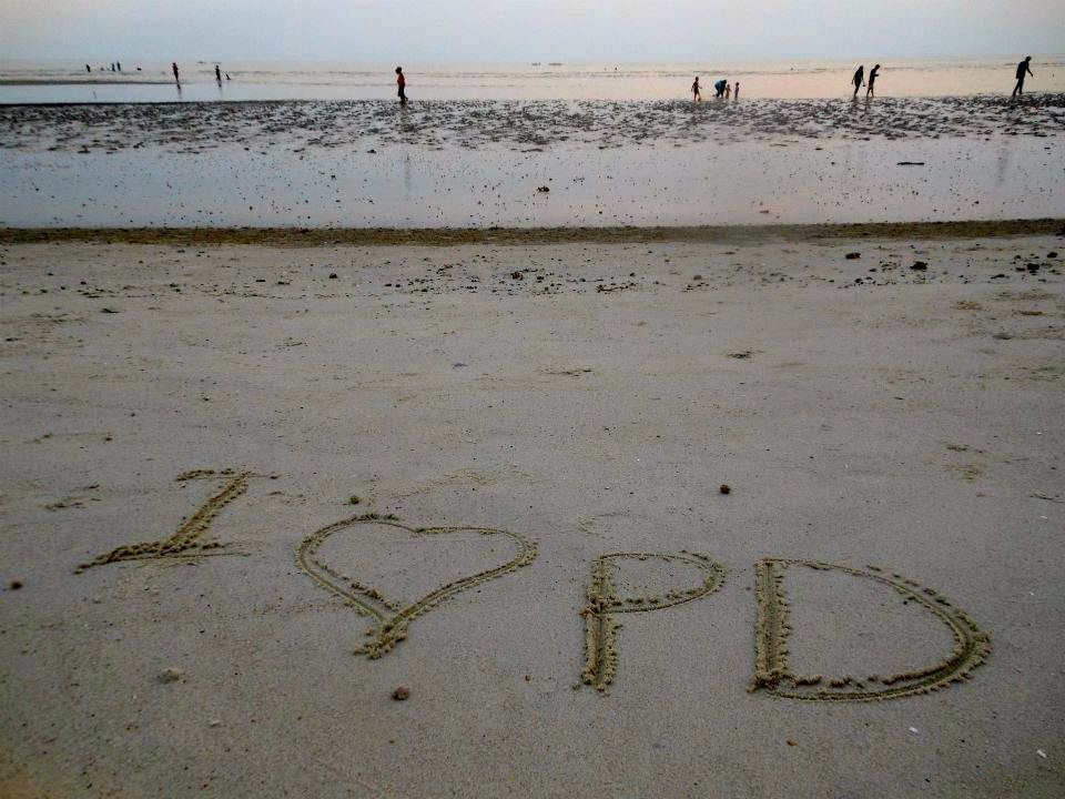 This photograph of Purnama beach is misleading. There was a reunion event going on at the beach. Just out of shot, there were lots of people on the beach and in the water.
